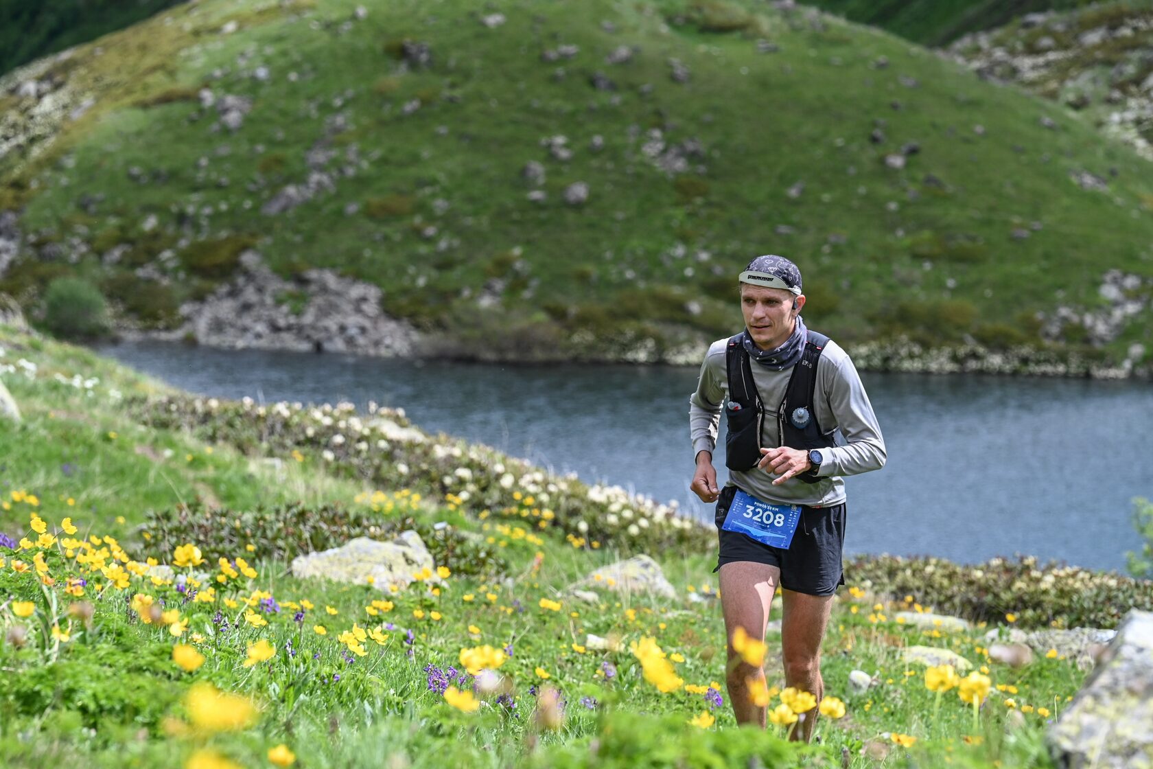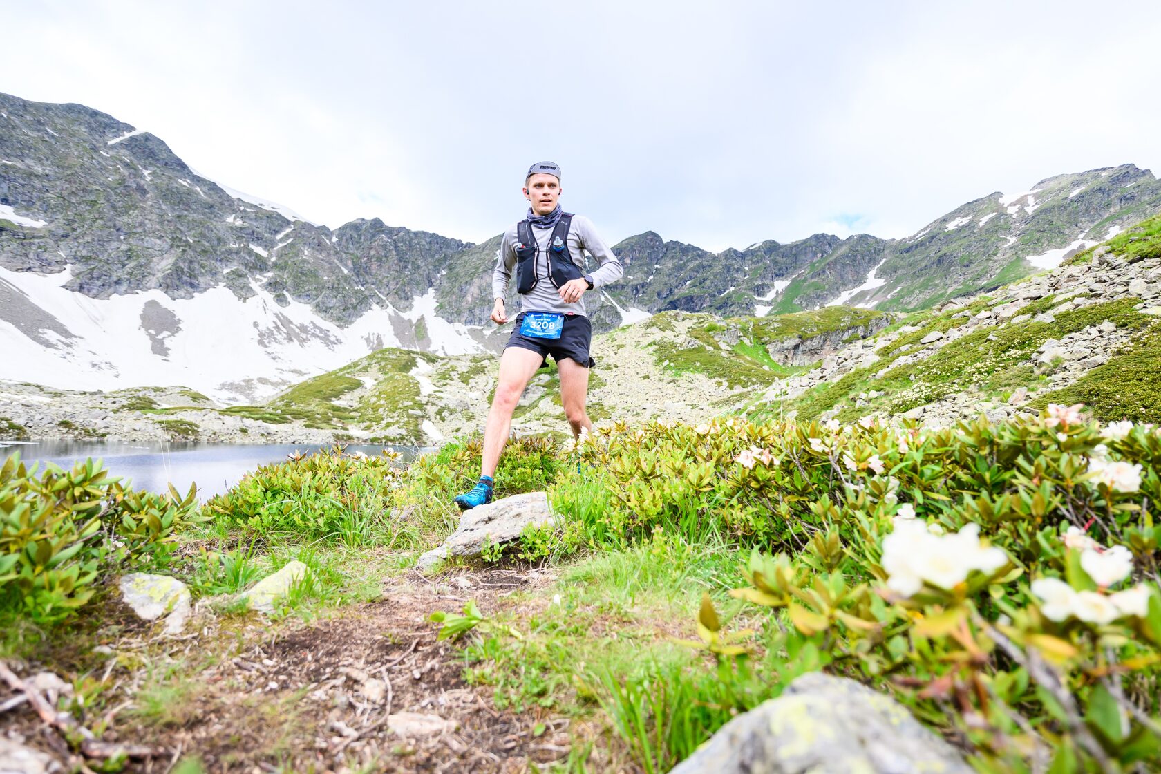 Были тяжелые подъёмы, их я не бегаю, а захожу, но, когда мы подошли к спускам, я поняла, что и их пробежать не выйдет легко и просто – много камней, которые едут – тут отлично помогло использование палок, вертикальные спуски – тут ничего не помогало, только осторожность и спокойность при спуске, снежники – это отдельная тема, мы пытались спуститься как нужно на ногах, но это не выходило и в итоге ты падаешь и едешь, оттормаживаясь руками – тут обязательно нужны перчатки, без них люди травмировали кожу на руках.