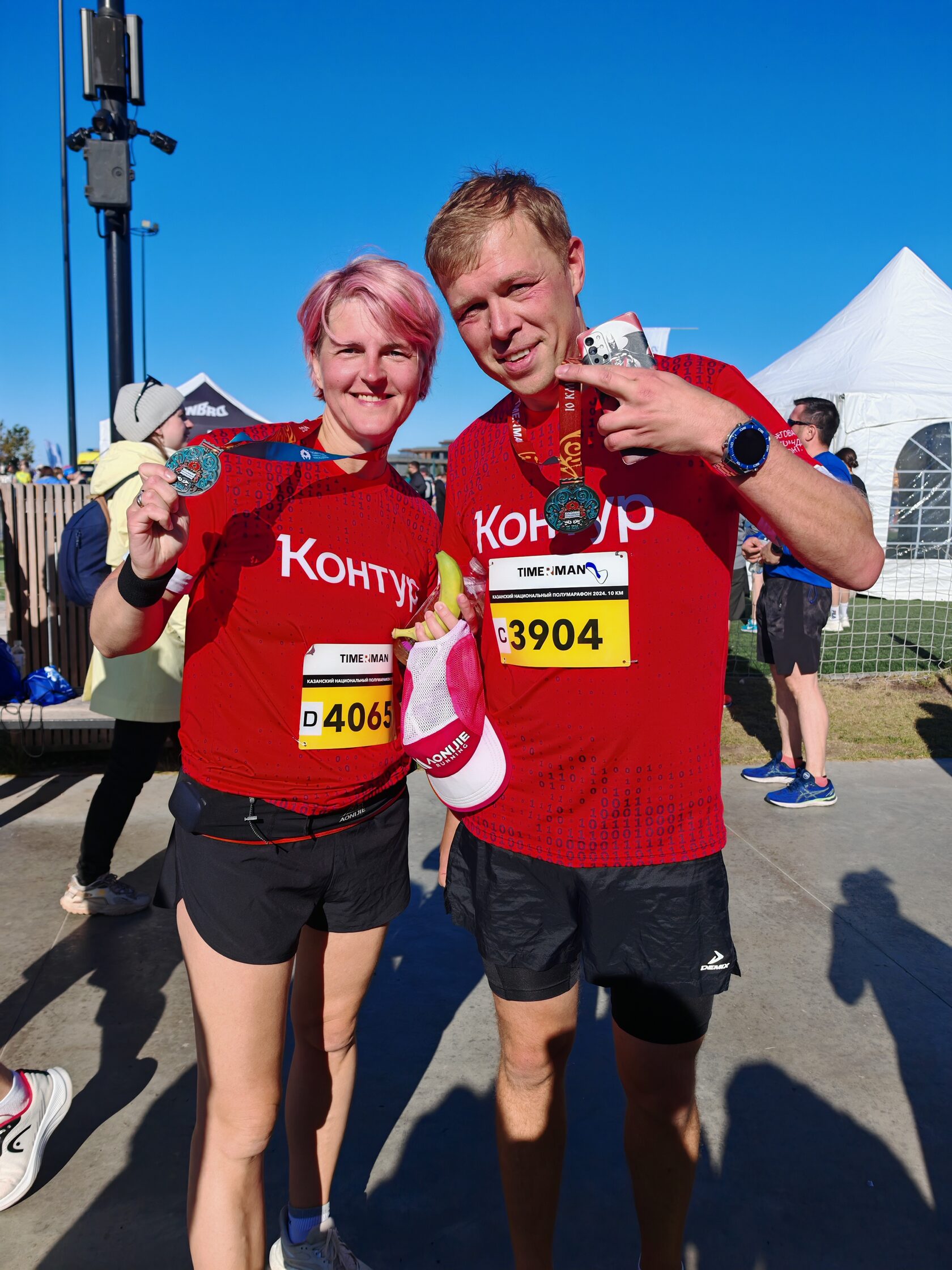 Сейчас мы продолжаем тренироваться, хоть и цель, к которой изначально шли, выполнена. Потому что бег позволяет держать себя в форме, посмотреть на города, в которые мы ездим по работе и в отпуск, с другой стороны, и соревнования, которые являются хорошим опытом!
